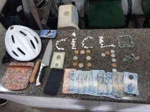 Em mais uma ação rápida de combate ao tráfico de drogas, a Polícia Militar do Ceará (PMCE) prendeu uma mulher em flagrante, no Centro de Fortaleza – Área Integrada de Segurança 4 (AIS 4). A prisão foi realizada por uma equipe do ciclopatrulhamento, nesta terça-feira (27). Drogas, duas facas e uma quantia em dinheiro foram apreendidas.