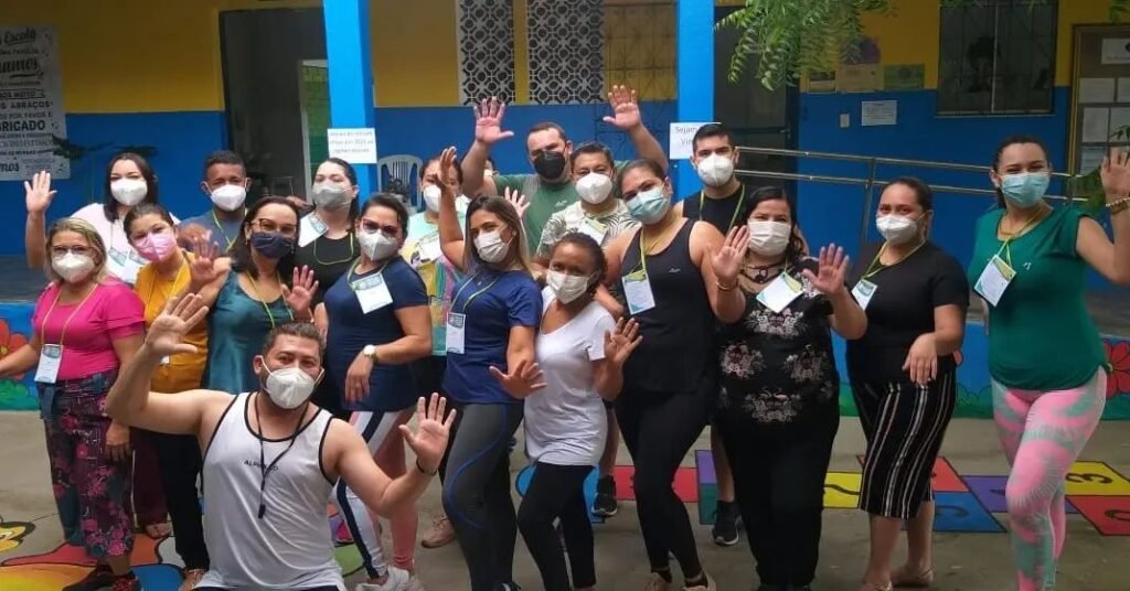 A secretária de esportes (Sejuvi) enviou um dos colaboradores das aulas de ritmos para realizar um momento com professores e funcionários da escola Heloísa Dinelly, durante o encontro pedagógico que foi realizado.