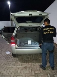 Os policiais civis deram voz de parada para o automóvel que era conduzido por Karla Nayrlene Alencar (22), sem antecedentes. Ao sair do carro, Luciano jogou um pacote para debaixo do transporte, na tentativa de se desfazer do produto, mas não teve sucesso. Ao abrir a embalagem, os agentes encontraram um tablete de cocaína, pesando pouco mais de 1 kg. Além disso, foram encontrados mais de R$ 1 mil em espécie com os suspeitos e anotações referentes à contabilidade do tráfico.