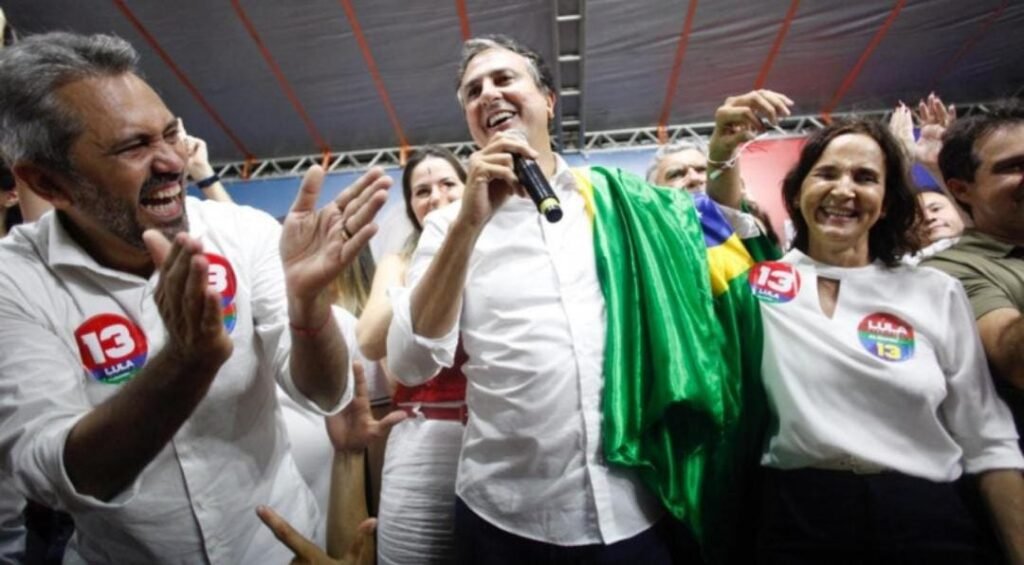 O senador eleito Camilo Santana participou de comício depois da vitória do presidenciável Luiz Inácio Lula da Silva (PT), na noite deste domingo, 30. Ao lado dos políticos Elmano Freitas e Izolda Cela, Camilo agradeceu aos 70% dos votos que o Ceará entregou ao Lula, e pontuou que o “Nordeste garantiu sua vitória”.