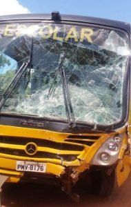 Ônibus do transporte escolar bate de frente em caminhão na BR-116, em Tabuleiro do Norte
