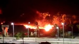O fogo se espalhou rapidamente, destruindo a barraca Atlantidz na madrugada desta quinta-feira.
