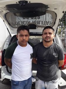 Francisco Wesley de Almeida Nascimento (26), com passagens por crime de trânsito, crime contra a administração pública e porte ilegal de arma de fogo, e Jefferson Costa de Freitas (26), com antecedentes por porte ilegal de arma de fogo e roubo, foram capturados no terreno. Wesley e Jefferson tentaram se desfazer dos pertences roubados, mas eles foram localizados próximo ao local da abordagem.