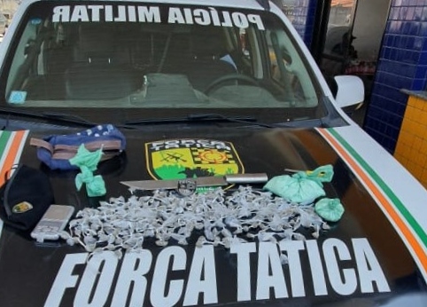 Policiais militares da Força Tática da 1ª Companhia do 18º Batalhão da Polícia Militar do Ceará (PMCE) realizaram a apreensão de um vasto material ilícito utilizado no tráfico de drogas, na Capital. O fato ocorreu durante uma saturação que aconteceu no sábado (12), no bairro Pici, na Área Integrada de Segurança 6 (AIS 6) de Fortaleza. Pouco mais de meio quilo de entorpecentes foi apreendido pelos militares.