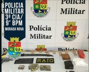 A Polícia Militar de Ibicuitinga/CE, POG, e Raio 045 de Morada Nova após realizar abordagem no bairro Centro, realizou por volta das 18h00min desta segunda-feira, dia 09/12/2019, apreensão de 225 gramas de maconha, 20 trouxinhas de cocaína e um simulacro de pistola. As equipes estavam com informações que um indivíduo conhecido como Dudu juntamente com outro conhecido como Alemão, realizavam a venda de drogas, então se deslocaram até o local e após abordar Dudu, que estava com uma trouxinha de maconha, as equipes perguntaram se havia mais drogas e o acusado informou que estavam no quintal da casa sendo encontradas então 20 trouxinhas de cocaína que estavam enterradas.