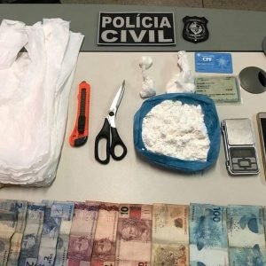 Ademais, também foram apreendidos diversos apetrechos (balança de precisão, diversos sacos plásticos, tesoura, estilete, etc), bem como a quantia de R$ 385 (trezentos e oitenta e cinco reais) em cédulas diversas, dinheiro este já oriundo da venda de droga, aparelho celular e 02 (duas) motocicletas (placas PNX-9540 e HUE-4405).