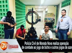 Na data de ontem, 13/03/2019, policiais civis da Delegacia Municipal de Morada Nova deflagraram operação que culminou no fechamento dos dois principais pontos de jogos clandestinos na cidade. Em um dos locais, além de jogo do bicho, também era praticado outros jogos de azar, tais quais: carteado, roleta da sorte e bingo.