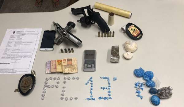 Os policiais deram continuidade à ofensiva e ainda pelo lado externo da residência avistaram o suspeito, já com a metade do corpo saindo pelo telhado. Nicolas portava um revólver calibre 38. Ele recebeu voz de prisão. Os agentes entraram na casa, onde encontraram uma mulher identificada como Yanka Larissa da Silva Ferreira Menezes (19). Ela tentava impedir o ingresso dos inspetores da PCCE no imóvel. Foi realizada vistoria no local e foram localizadas uma pistola .40, municiada com 04 munições; uma sacola de cor preta contendo drogas; uma balança de precisão e a R$ 276,00 em espécie.