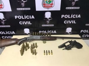 Dando sequência à ação, os policiais seguiram até a casa situada na localidade de Tuinha, onde encontraram um homem identificado como Francisco Tupinambá Chaves, pai de Rondinelle. Após buscas, os agentes encontraram uma espingarda marca calibre 28, com 15 munições, algumas delas deflagradas. Francisco Tupinambá recebeu voz de prisão e foi levado para a Regional de Sobra, onde foi autuado em flagrante por porte irregular de arma de fogo. A Polícia Civil segue com as buscas, com o objetivo de capturar Rondinelle.