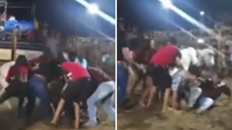 Em vídeos divulgados nas redes sociais, também é possível ver pessoas correndo atrás de um boi. Assustado, o animal tenta se esquivar, mas acaba sendo dominado pelo grupo. As imagens mostram ainda as pessoas puxando a cabeça, o rabo e as pernas do animal até que ele cai e é imobilizado no solo. Muitos chegam a ficar sobre o animal. Nas arquibancadas as pessoas gritam e aplaudem. Em outro vídeo, o alvo do grupo é um jumento que sofre as mesmas agressões.