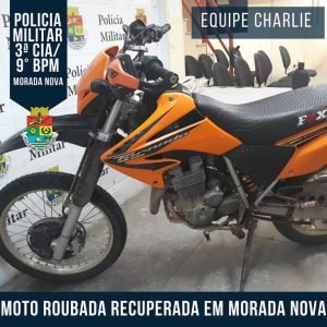 Após a denúncia uma equipe as composições policiais Equipe Charles 3° / Cia. 9° BPM/CPI SUL, fizeram diligências até o local informações e confirmaram a veracidade da informação. Após isso a motocicleta foi conduzida e apresentada na Delegacia de Morada Nova para serem lavrados os procedimentos cabíveis.