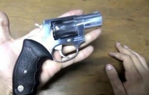 No interior do veículo foi encontrado 01 (um) revólver calibre 38, marca Taurus, acabamento oxidado, com capacidade para seis tiros, número de série 148600, desmuniciado, motivo pelo qual foi dado voz de prisão ao autor e conduzido à Delegacia Regional de Polícia Civil, em Quixadá-Ce, para lavratura do APF. O mesmo foi autuado em flagrante pelo crime previsto no Art. 14, do Estatuto do desarmamento (Lei 10826/03).