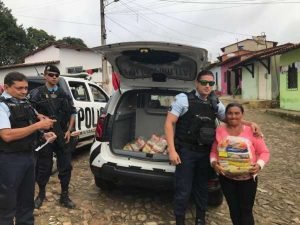 Policiais militares doam cestas básicas em comunidade carente da Serra de Pacoti