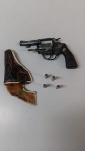 Na abordagem foi encontrado um REVÓLVER CALIBRE 38 e 04 munições com a pessoa de JOSÉ ALVES FILHO.