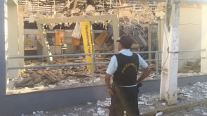 A agência ficou completamente destruída após as explosões na madrugada de hoje