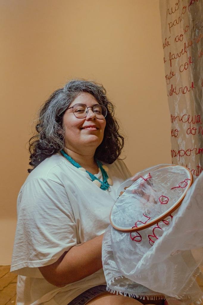 No sábado, a Artista Vistual Simone Barreto estará em Quixeramobim ministrando a Oficina “Bordar com resistência”. A proposta da oficina é que os participantes sejam instigados a bordar palavras que ativem em seu corpo a ideia de resistência e que reflita a sua prática cotidiana de resistir a partir das reflexões trazidas nas obras presentes na Exposição Tramas de Belo Monte, em cartaz na Casa, e da memória de Antônio Conselheiro.