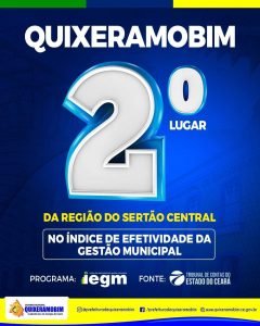 Quixeramobim é destaque e fica em 2º lugar no IEGM (Índice de Efetividade da Gestão Municipal), de 2018, entre os municípios do sertão central.