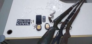 Após perguntas ao criminoso, a Polícia Civil foi até um dos cômodos onde encontrou 67 papelotes de cocaína prontos para a comercialização. Ainda na casa, foram encontradas três espingardas do tipo socadeira e materiais utilizados na traficância de entorpecentes.