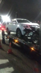 Após consultar as informações do veículo, os policiais militares constataram que a picape possuía 185 multas, totalizando mais de R$ 30 mil, além de débito de licenciamento. Uma equipe do Batalhão de Polícia de Trânsito Urbano e Rodoviário Estadual (BPRE) foi acionada e recolheu o veículo ao Departamento Estadual de Trânsito (Detran).