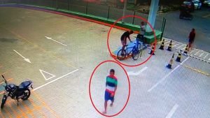 Câmeras de segurança da própria agência bancária e do supermercado flagraram o momento em que o grupo armado chega na agência bancária e segue para a fila onde estava a jovem que seria o “alvo” da quadrilha. Dois dos criminosos estavam em bicicletas e os demais à pé.