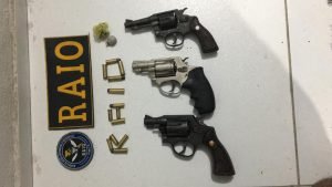 De posse dos acusados foi encontrado o seguinte armamento: