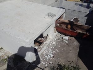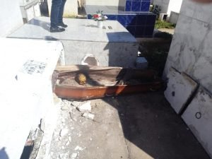 Por volta das 07h30min desta quarta-feira dia 19/12/2018 a polícia foi informada de uma violação de túmulo no cemitério central da cidade. Prontamente a composição da viatura 9181 foi até o local e confirmou o ocorrido. Um dos familiares, identificado como F. J. A. N., 45 anos, estava no local e informou que o túmulo de sua família foi violado e foram levados restos mortais, não tendo informação de quem teria cometido este delito.