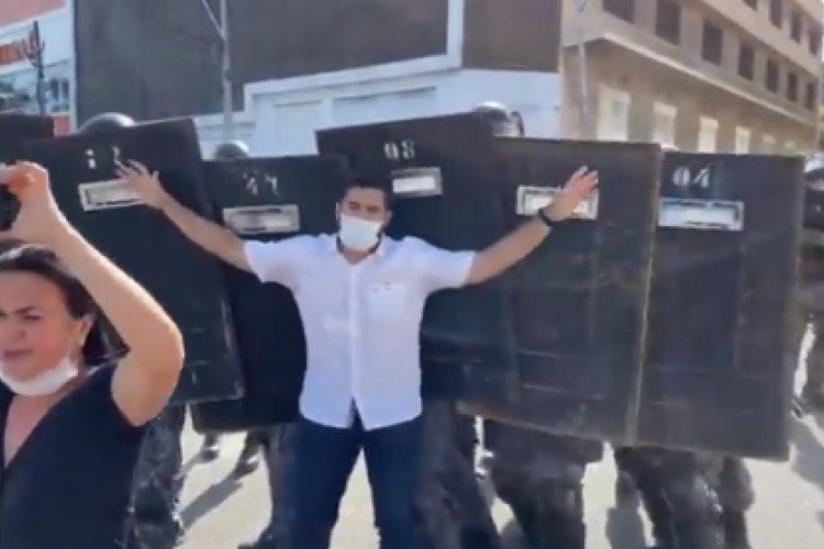 Veja o vídeo: André Fernandes impede atuação da PM para dispersar manifestantes contra lockdown em Fortaleza